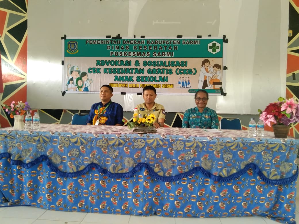Diskominfo Sarmi– Pemerintah Kabupaten Sarmi, melalui Puskesmas Sarmi menggelar kegiatan advokasi dan sosialisasi cek kesehatan gratis (CKG) bagi anak sekolah di Aula SMA Negeri 1 Sarmi, Kabupaten Sarmi, Papua, Kamis 02/09/2015 di aula SMA negeri 1 Sarmi