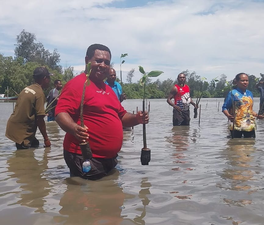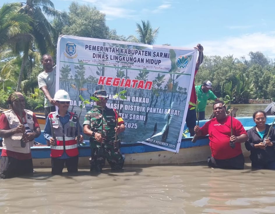 Diskominfo Sarmi–Dalam rangka mendukung pelestarian lingkungan dan menjaga ekosistem pesisir, Dinas Lingkungan Hidup (DLH) Kabupaten Sarmi menggelar kegiatan penanaman 23 ribu pohon bakau di Kampung Masep, Distrik Pantai Barat, Kabupaten Sarmi, Provinsi Papua, pada Kamis, 06/11/2025.