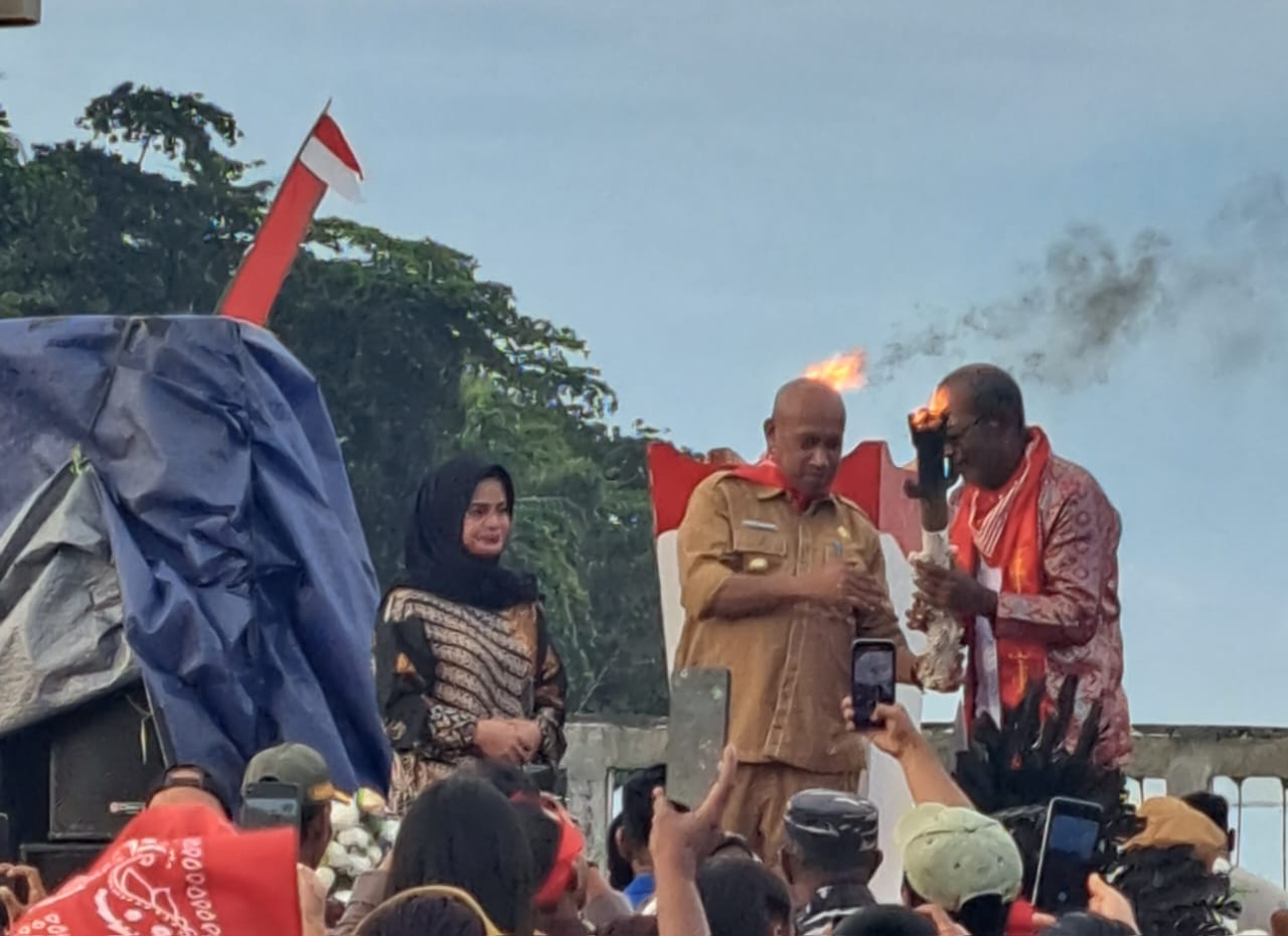 Selanjutnya, Obor Pattimura tersebut diserahkan kepada Pj Bupati Sarmi Markus O. Mansnembra, SH., MM., yang didampingi Ketua DPRK Sarmi, Jumriati, SH., untuk diletakkan pada tempatnya. Dalam perayaan tersebut, selain dihadiri Pj Bupati Sarmi, serta Ketua DPRK Sarmi, turut pula dihadiri Kapolres Sarmi AKBP Timur Santoso, S.I.K., M.A.P., Dandim 1712 Sarmi, Letkol Inf. Emanuel, S.K., Pimpinan Lembaga Kultur Adat Sarmi dan Masyarakat Keluarga Besar Maluku yang berdomisili di Kabupaten Sarmi serta dimeriahkan penampilan artis asal Maluku, Marvel Kaya.