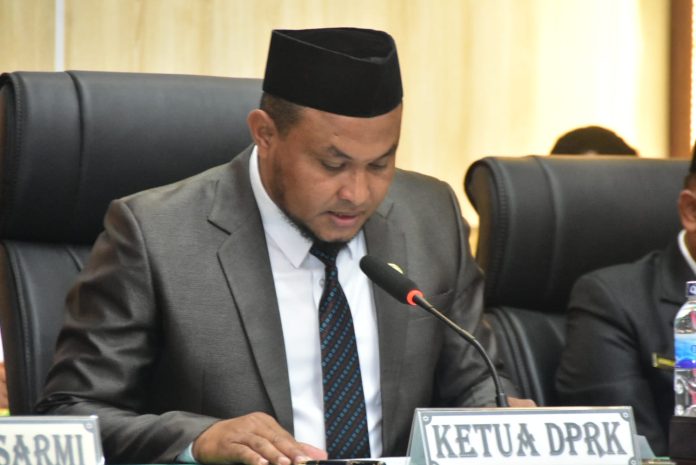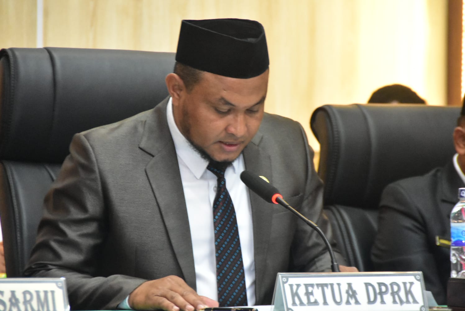 Diskominfo Sarmi—Ketua Dewan Perwakilan Rakyat Kabupaten (DPRK) Sarmi, Muh. Ashari Tiris, S.A.P, menyampaikan sambutan dalam rapat paripurna pembahasan perubahan Anggaran Pendapatan dan Belanja Daerah (APBD) Tahun Anggaran 2025 yang digelar di Gedung DPRK Sarmi, Selasa (09/09/2025).