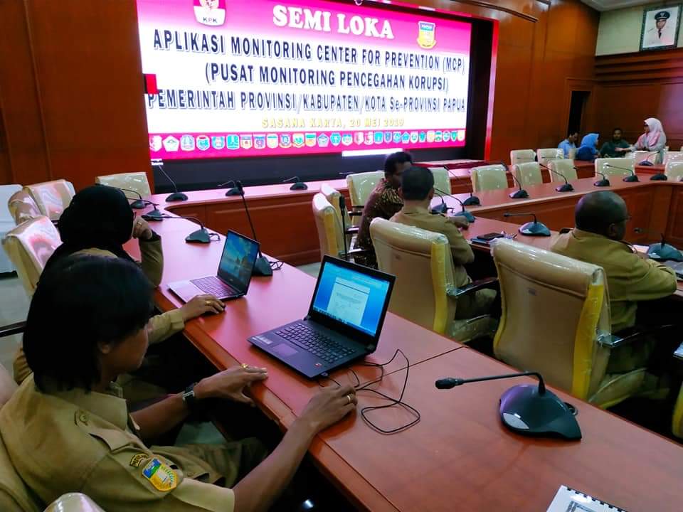 Bertempat di Sasana Karya di Sasana Karya Kantor Gubernur Papua, Komisi Pemberantasan Korupsi (KPK) melakukan Sosialisasi Aplikasi Monitoring Center For Prevention (MCP) bersama para Sekretaris Daerah dan Inspektur serta admin MCP se – Provinsi Papua, Senin (20/5)