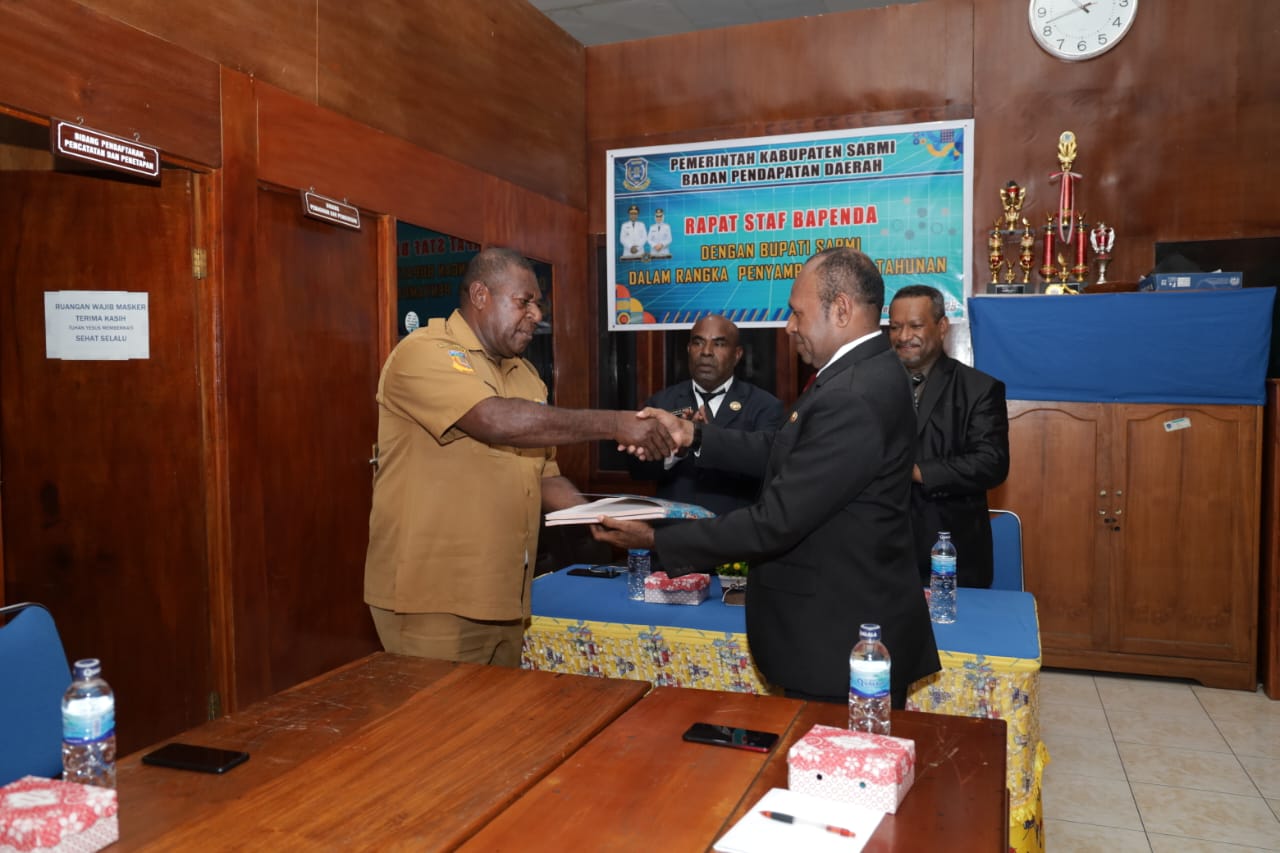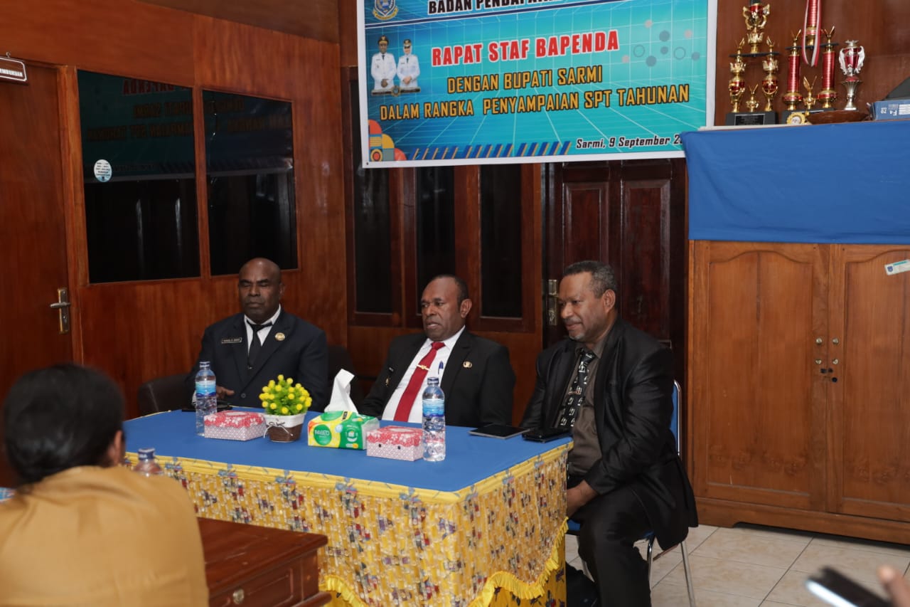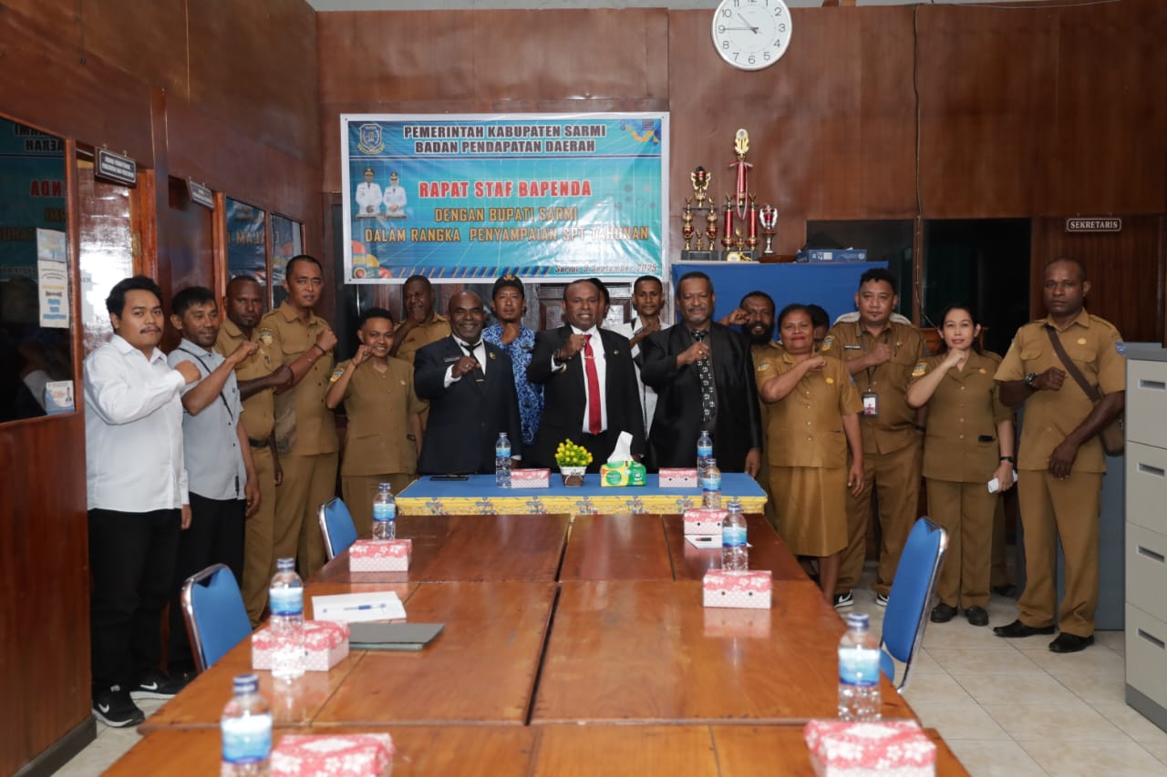 Kepala Bappenda Kabupaten Sarmi, Danie R. Senis, S.H., M.M., turut menyampaikan apresiasinya kepada Bupati dan jajaran pimpinan daerah atas dukungan yang diberikan. Menurutnya, perhatian dari pimpinan daerah, termasuk dalam peningkatan sarana dan prasarana, telah memberikan motivasi tersendiri bagi Bappenda untuk bekerja lebih optimal.