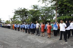 Diskominfo Sarmi – Pemerintah Kabupaten Sarmi bersama Forkopimda, Kepala OPD, Asisten I dan Asisten II, Staf Ahli Bupati Bidan Politik, Hukum dan Pembinaan Masyarakat, PNS dan Honorer, TNI, POLRI, BUMN, dan BUMD, menggelar upacara bendera memperingati hari lahirnya Pancasila, bertempat di halaman kantor BKPSDM, Kota Baru Petam, Kamis (1/6/2023).