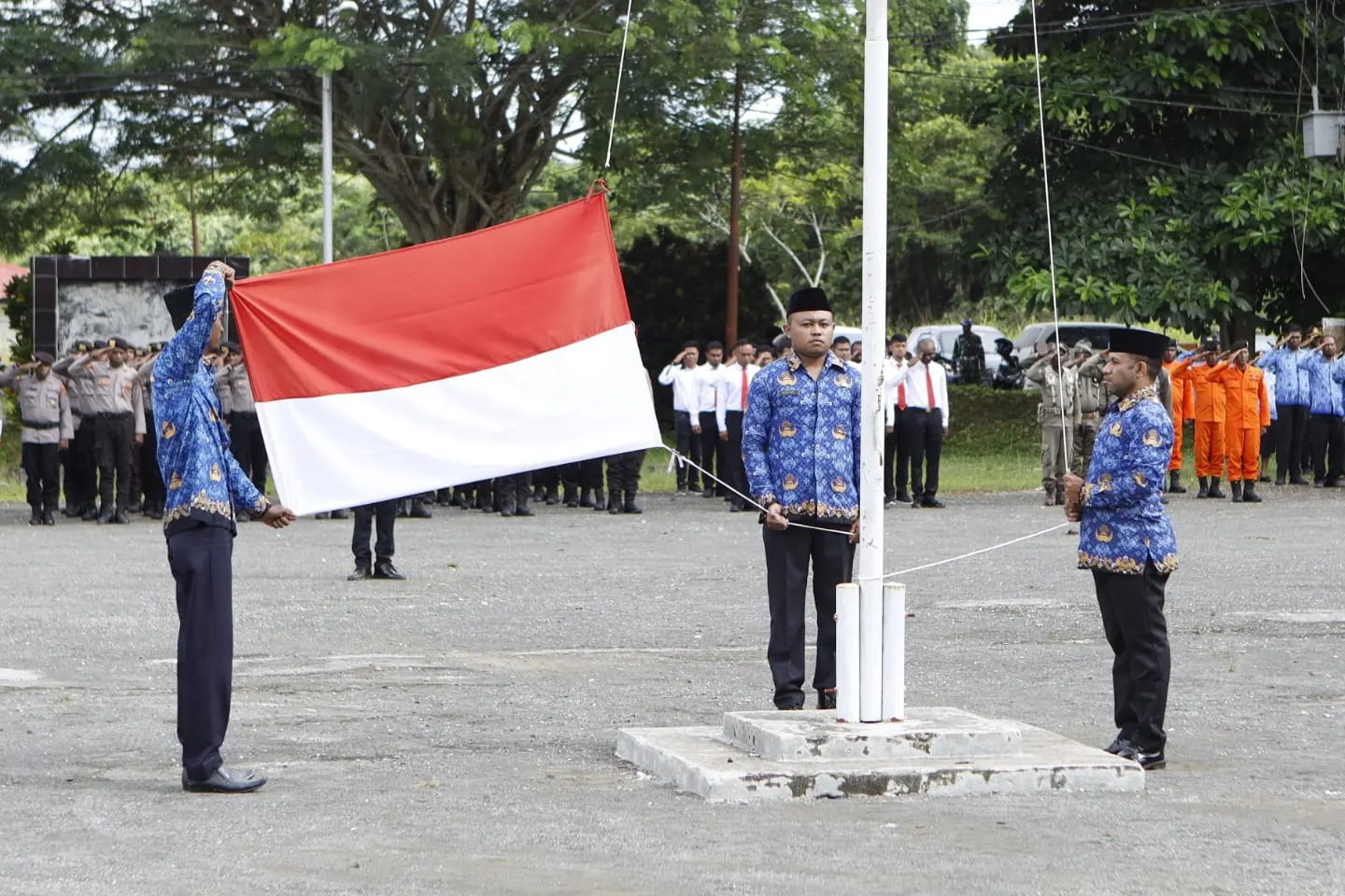 Diskominfo Sarmi – Pemerintah Kabupaten Sarmi bersama Forkopimda, Kepala OPD, Asisten I dan Asisten II, Staf Ahli Bupati Bidan Politik, Hukum dan Pembinaan Masyarakat, PNS dan Honorer, TNI, POLRI, BUMN, dan BUMD, menggelar upacara bendera memperingati hari lahirnya Pancasila, bertempat di halaman kantor BKPSDM, Kota Baru Petam, Kamis (1/6/2023).