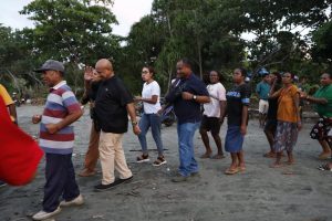Diskominfo Sarmi -Pj Bupati Sarmi, Markus O. Mansnembra, SH., MM, bersama para Asisten mengunjungi pantai wisata Kampung Sawar, Minggu (4/6/2023).