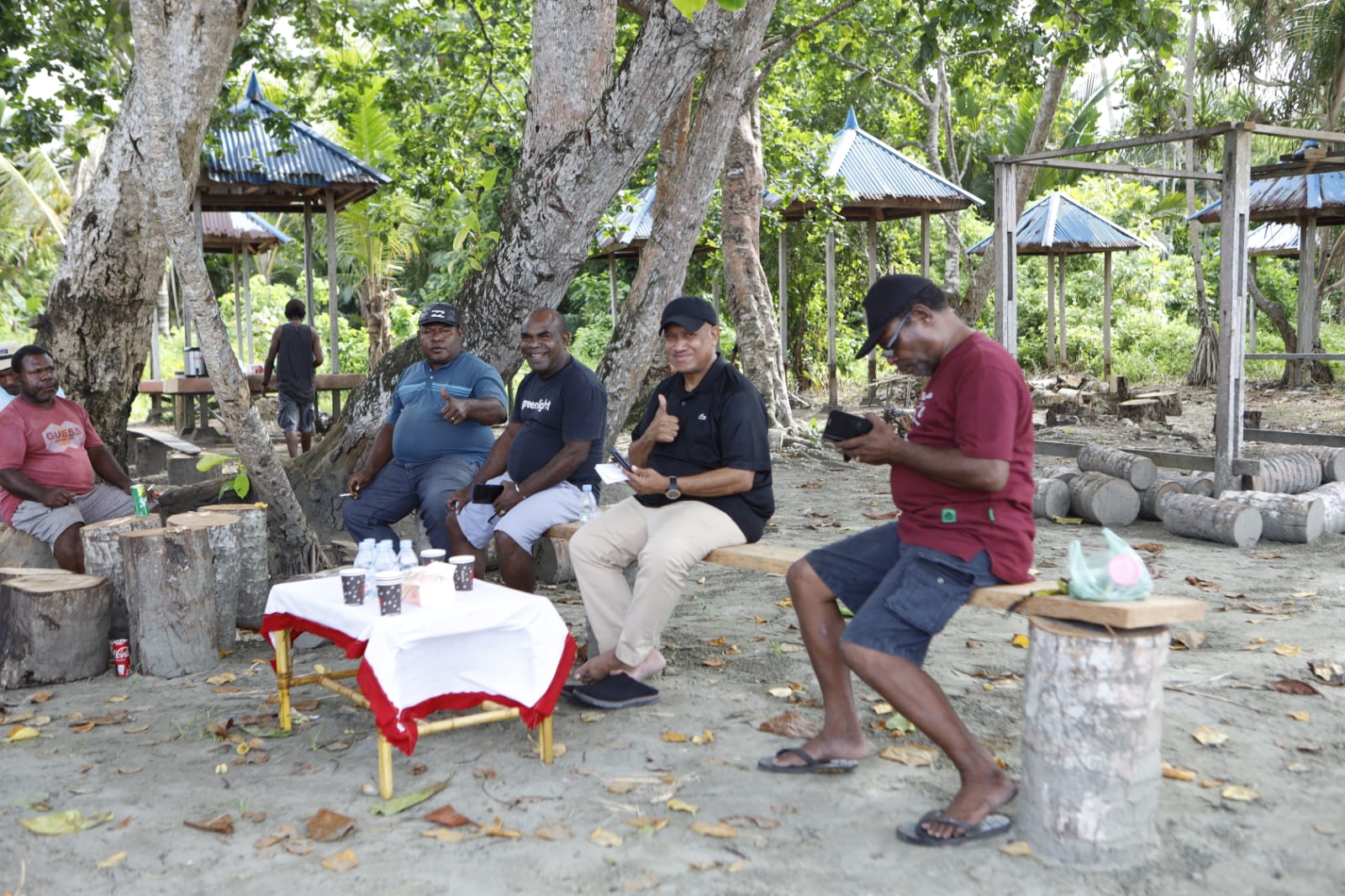 Diskominfo Sarmi -Pj Bupati Sarmi, Markus O. Mansnembra, SH., MM, bersama para Asisten mengunjungi pantai wisata Kampung Sawar, Minggu (4/6/2023).