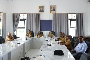 Diskominfo Sarmi – Pj Bupati Sarmi Markus O. Mansnembra, SH., MM bersama Pj Sekda dan Pimpinan OPD terkait, menghadiri entry meeting terinci LKPD Tahun 2022, bertempat di ruang rapat Lantai II Aula Kantor Bupati Sarmi.