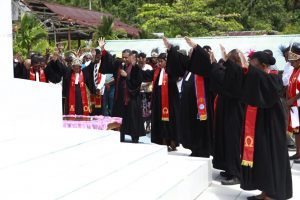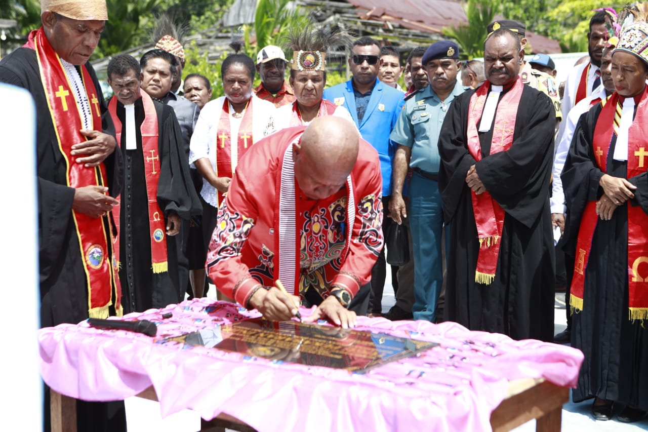 Pj Bupati juga menyampaikan rasa syukurnya atas pengorbanan orang-orang tua dulu, bagaimana mereka berjuang keras dengan menggunakan alat transportasi sederhana (perahu dayung) untuk menjemput guru jemaat di Pulau Wakde untuk bisa hadir di Kampung Bagaiserwar pada 110 tahun yang lalu.