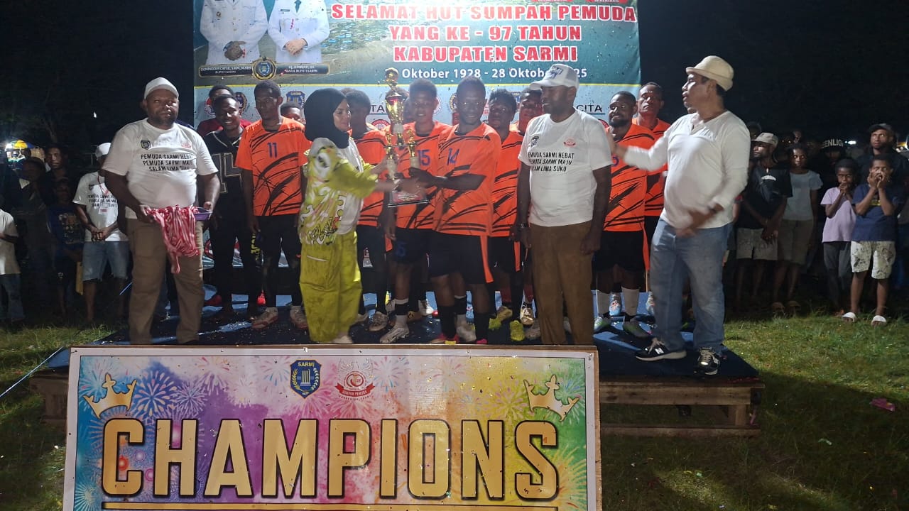 “Pemerintah Kabupaten Sarmi berkomitmen menjadikan turnamen dan peringatan Sumpah Pemuda sebagai tradisi tahunan. Untuk tahun 2026, kami usulkan agar pelaksanaan lomba dipusatkan di Distrik Pantai Timur, agar penyelenggaraan semakin merata di seluruh wilayah.”tutur Bupati Dominggus